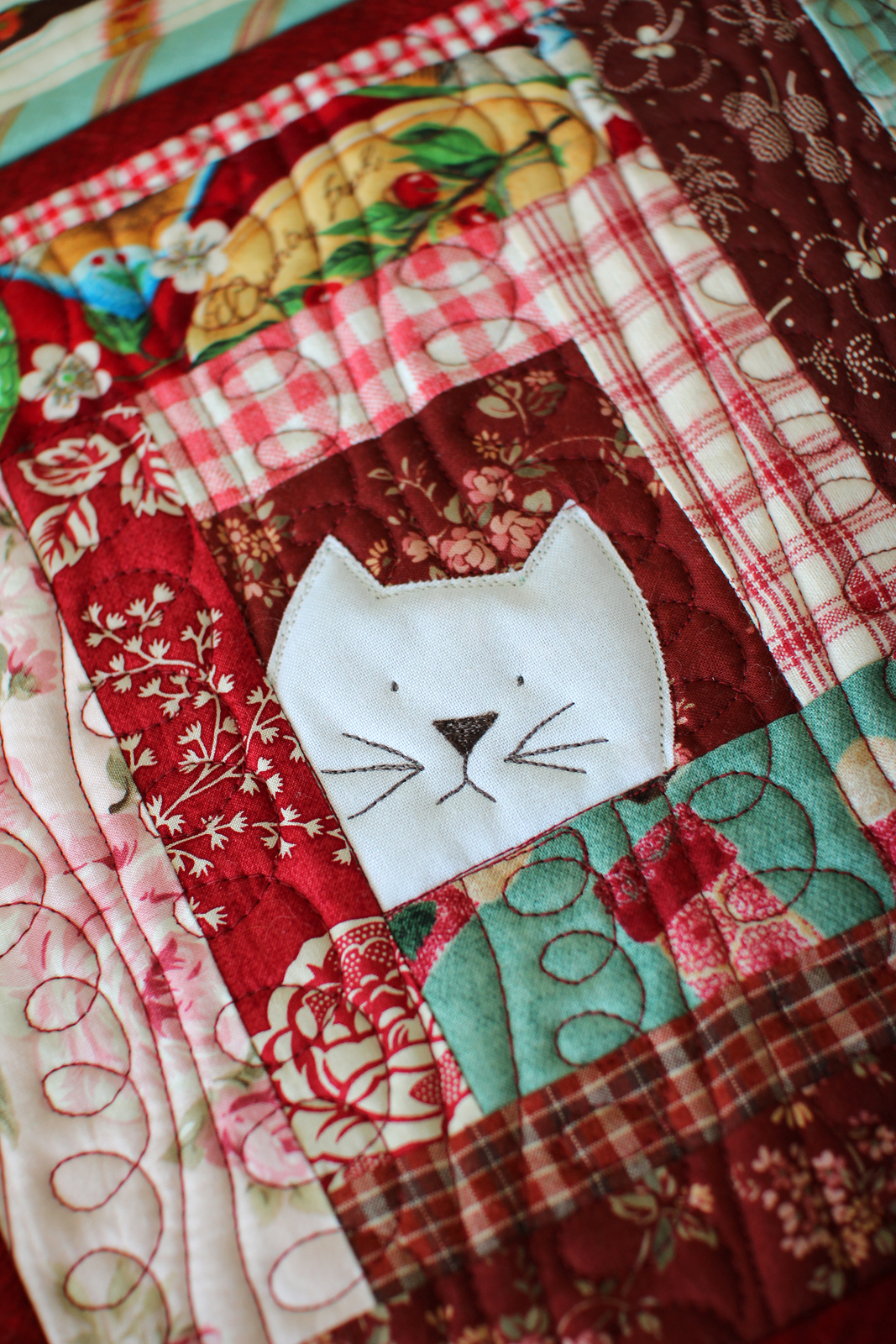 I used fusible web for the cat and nose appliques, and the block is quilted entirely by machine... even the cat's face.