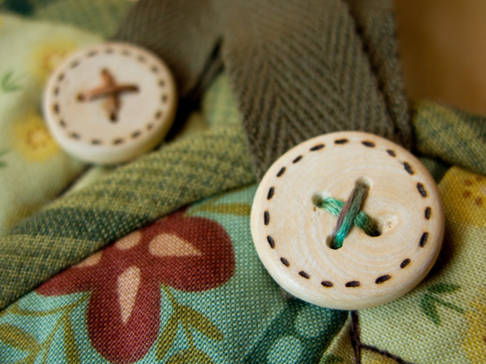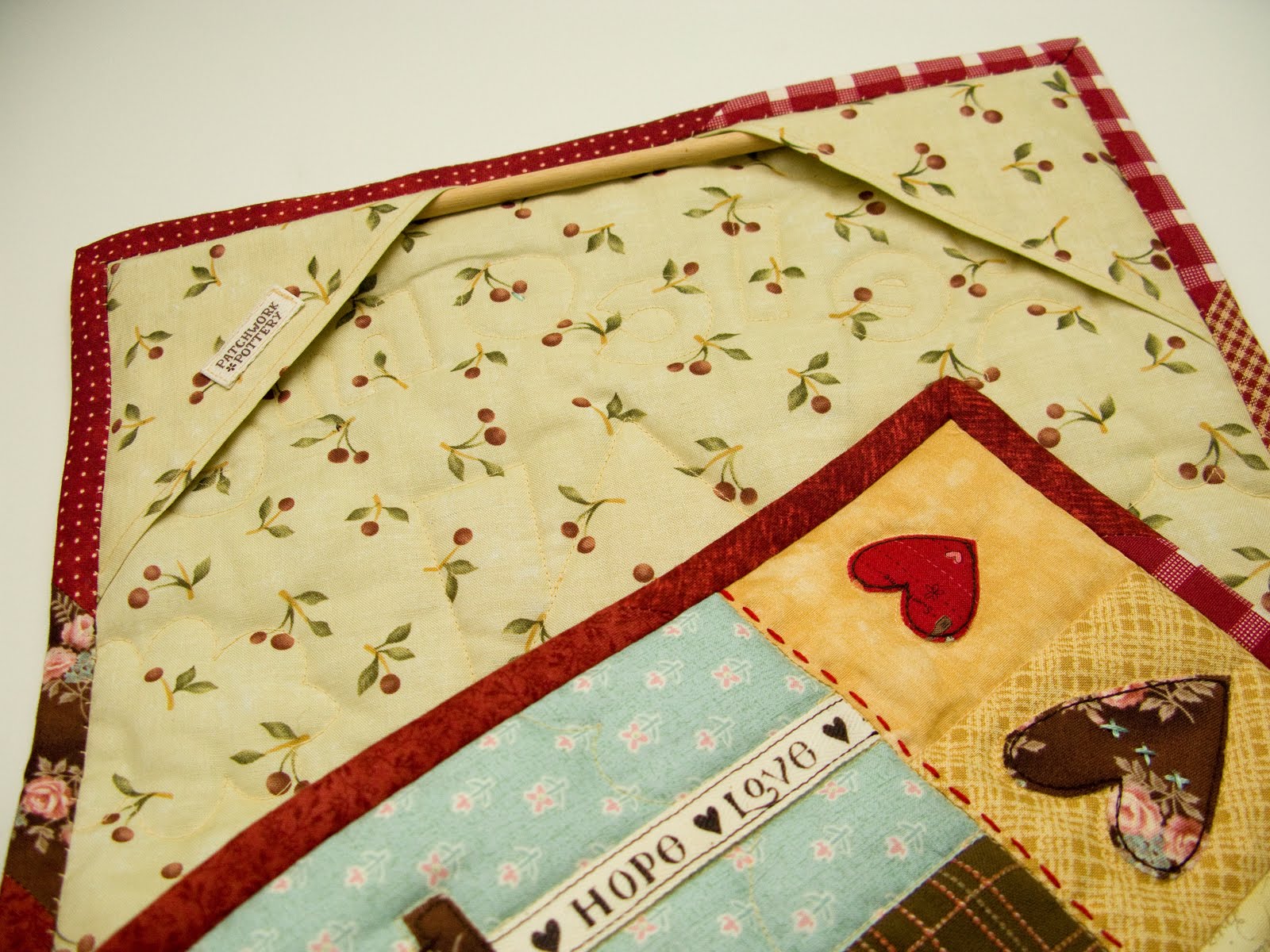 And of course I always love to add buttons! I usually finish the back of little wall-hangings with these little corner pockets sewn into the binding. Just add a small stick and it's ready to hang!