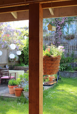 We have had a lot of rain lately which means that my plants are small but on the other hand I haven't had to water my garden much! I whipped up Christie Fowler's "Rain Cloud" mugrug from Zakka Style that I was most recently published in.